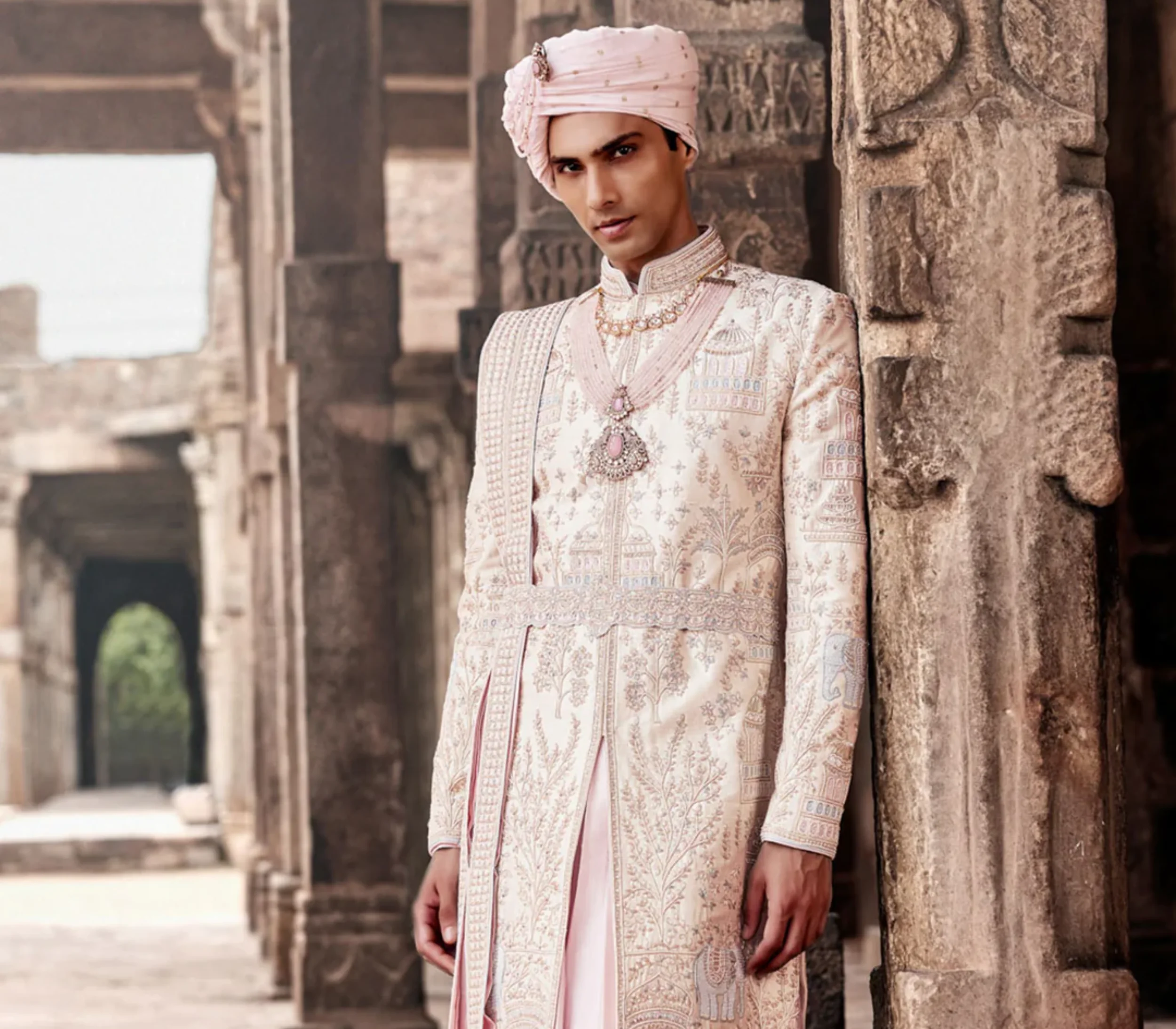 Cobra Silk is a distinctive fabric known for its bold texture and luxurious finish. At Shaadisherwani, it is used to craft regal sherwanis for men, offering a unique blend of richness and sophistication. Perfect for weddings and grand occasions, Cobra Silk adds a statement-making elegance to traditional groom wear.